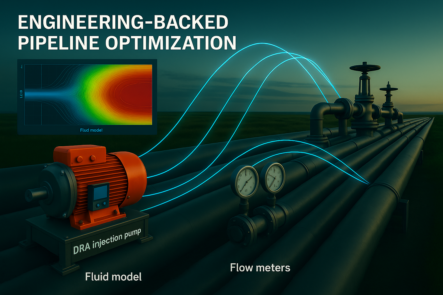 We deliver engineering-led pipeline optimization powered by Drag Reducing Agent (DRA) solutions to unlock hidden capacity, increase throughput, and improve flow efficiency. Through hydraulic modeling, performance analysis, and field optimization, we reduce pressure losses, eliminate bottlenecks, and stabilize high-volume operations. Intelligent pigging is applied selectively to support DRA performance where required—ensuring measurable technical and commercial results without capital expansion.